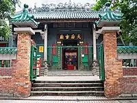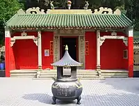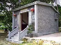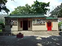 Temple de Tin Hau de Tai Tseng Wai (大井圍天后古廟, 大井天后古廟) Construit en 1688[68]. Restauré en 1981. Le temple est partagé par les trois villages de Tai Tseng Wai (en), Ng Uk Tsuen et Shing Uk Tsuen (en)[69]. |
