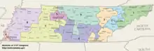 Le Tennessee de l'Est comprend tous les 1er, 2e et 3e districts congressionnels de l'État et une partie du 4e district (le Tennessee comprend en 2020, neuf districts congressionnels, chacun des districts élit un représentant à la Chambre des représentants des États-Unis). Le premier district est concentré autour de la région des Trois-villes et le nord-est du Tennessee. Le deuxième district comprend Knoxville et les comtés montagneux du sud. Le troisième district comprend la région de Chattanooga et les comtés au nord de Knoxville (les deux régions sont reliées par un couloir étroit dans l'est du comté de Roane). Le quatrième, qui s'étend dans une zone au sud-ouest de Nashville, comprend plusieurs comtés du plateau de Cumberland dans l'est du Tennessee.