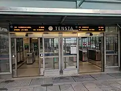 Établie en souterrain, la station Tensta de la branche Hjulsta de la ligne Bleue, est située entre la station terminus ouest Hjulsta et la station Rinkeby, en direction du terminus est : Kungsträdgården[1].