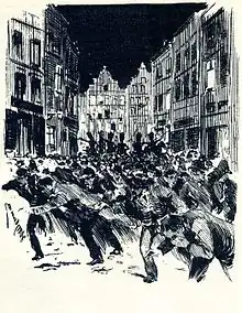 En , une deuxième grève générale éclate visant à imposer une nouvelle réforme électorale et notamment la fin du système de vote plural[3]. Des incidents sanglants provoquent la mort de onze manifestants (deux tués à Houdeng-Aimeries, trois à Bruxelles et six à Louvain)[4]. Cette grève est initialement provoquée par les mineurs de charbon de la province de Liège, mécontents de leurs mauvaises conditions de vie, avant de s'étendre dans le pays. Elle est également soutenue par les anarchistes qui croyaient qu'une grève générale pouvait devenir une révolution à part entière[5]. Elle dure du 10 au et constitue la deuxième grève générale de l'histoire de Belgique, mais ne réussit pas à atteindre ses objectifs[6]. À la suite de ces troubles à travers l'ensemble du pays, la popularité du roi Léopold II est gravement touchée, et les craintes d'une révolution anarchiste se font ressentir.