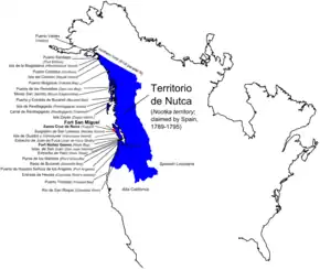 En 1793, Francisco de Eliza et Juan Martínez y Zayas cartographient les côtes situées entre le détroit de Juan de Fuca et la baie de San Francisco et explorent l'embouchure du fleuve Columbia[21].