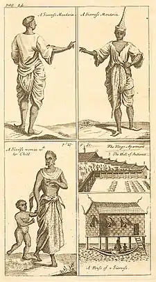 Historiquement, les hommes et les femmes thaïlandais se sont vêtus d'un pagne appelé pha chung hang[1] . Les hommes portaient leur pendentif pha chung pour couvrir la taille jusqu'à mi-hauteur de la cuisse, tandis que les femmes portaient leur pha chung pendu le long de la taille bien en dessous du genou[2]. Les membres de la noblesse portaient des robes de soie appelées khrui et un grand chapeau pointu appelé lomphok pour assister aux affaires royales. Les poitrines nues et les pieds nus ont été acceptés dans le cadre du code vestimentaire formel thaïlandais et sont observés dans les peintures murales, les manuscrits illustrés et les premières photographies jusqu'au milieu des années 1800. Avant le XXe siècle, les principaux marqueurs qui distinguaient la classe dans les vêtements thaïlandais étaient l'utilisation de tissus de coton et de soie avec des motifs imprimés ou tissés, mais les roturiers et les membres de la famille royale portaient des vêtements enveloppés et non cousus[3].