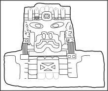 C'est dans la zone A que se situe la structure la plus connue du site, une cour surbaissée, parfois appelée «El Recinto» en espagnol, à deux mètres sous le niveau du sol. On peut distinguer quatre phases de construction. Les premières phases consistaient en structures d'argile. Au cours de la quatrième phase, les murs de la cour furent munis d'un parement de blocs de travertin assemblés sans mortier. Placés symétriquement sur les côtés est et ouest se trouvent quatre monolithes en forme de T renversé, sculptés à l'effigie d'un were-jaguar dans un style olmèque caractéristique. Chaque figure a des yeux en amande, des lèvres aux commissures tournées vers le bas et brandit une «torche» dans ses mains. Les monolithes ont fait l'objet de plusieurs interprétations. Pour Guadalupe Martinez Donjuan, ils indiquent les solstices et les équinoxes; pour Karl Taube, il s'agit de représentations du dieu olmèque du maïs, tandis que F. Kent Reilly III estime qu'il s'agit des quatre montagnes sacrées aux quatre coins de l'univers[3]. Au dos d'un des quatre monolithes sont gravés une fleur et deux barres. Si une barre correspond au chiffre cinq, il s'agirait d'une inscription calendaire «10-fleur[4] ». La fonction de la cour elle-même fait l'objet de spéculations. Karl Taube pense que, grâce au système de drainage formé de pierres en forme de U dont elle est équipée, la cour aurait pu servir à des rituels de fertilité au cours desquels elle aurait été remplie ou vidée d'eau. Selon lui les quatre monolithes et les deux banquettes de ce qui semble être un terrain de jeu de balle miniature au milieu de la cour forment un motif «quatre points plus une barre».