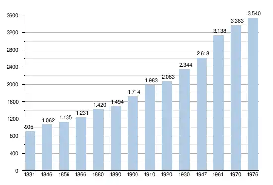 - Sources : INS, Rem. : 1831 jusqu'en 1970 = recensements, 1976 = nombre d'habitants au 31 décembre[2].