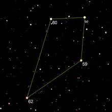 Carte de l'astérisme de Terebellum avec ses quatre étoiles.