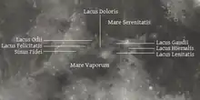 | Lacus Lenitatis | Lac de tendresse | 14, 12 | 80 |