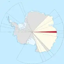 La terre Guillaume-II (rouge), dans le territoire antarctique australien (blanc cassé), en Antarctique.