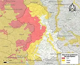 Le retrait-gonflement des sols argileux est susceptible d'engendrer des dommages importants aux bâtiments en cas d’alternance de périodes de sécheresse et de pluie. 61,9 % de la superficie communale est en aléa moyen ou fort (67,4 % au niveau départemental et 48,5 % au niveau national). Sur les 2 313 bâtiments dénombrés sur la commune en 2019, 1 897 sont en aléa moyen ou fort, soit 82 %, à comparer aux 81 % au niveau départemental et 54 % au niveau national. Une cartographie de l'exposition du territoire national au retrait gonflement des sols argileux est disponible sur le site du BRGM[9],[10].