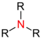 | Comparaison d'atomes tertiaires avec les atomes primaires, secondaires et quaternaires. Les atomes centraux sont marqués en rouge dans les différents groupes fonctionnels. | ||||