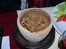 C'est une spécialité de viande, généralement d'agneau, cuite dans un pot en terre qui est ensuite cassé devant le convive.