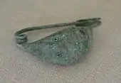 - Sorte de bottines dont l'extrémité est affectée d'une forme pointue. Cet élément vestimentaire serait probablement d'inspiration greco-ionienne.