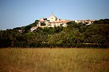 Elle se trouve à mi-chemin entre la mer Méditerranée et les premiers contreforts des Cévennes. Entourée de garrigue, elle présente une vue sur le Pic Saint-Loup.