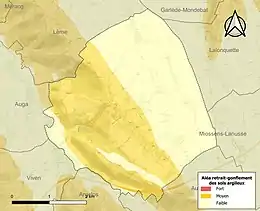 Le retrait-gonflement des sols argileux est susceptible d'engendrer des dommages importants aux bâtiments en cas d’alternance de périodes de sécheresse et de pluie[29]. 46,9 % de la superficie communale est en aléa moyen ou fort (59 % au niveau départemental et 48,5 % au niveau national)[Carte 3]. Depuis le , en application de la loi ELAN, différentes contraintes s'imposent aux vendeurs, maîtres d'ouvrages ou constructeurs de biens situés dans une zone classée en aléa moyen ou fort[Note 5],[30].