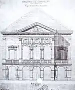 En conséquence, le nouveau théâtre doit être reconstruit dans la même configuration que le précédent. Sa réalisation est alors confiée à Charles-Bernard Pellegrini, architecte de la ville et ayant par ailleurs lui aussi perdu plus de 10 000 francs de plans et gravures dans l’incendie du théâtre où il était provisoirement installé[11].