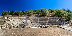 Exemple typique de théâtre grec antique, ce théâtre est de forme semi-circulaire, avec la présence d'un orchestre en son centre. Initialement de forme circulaire, l'orchestre est transformé en forme semi-circulaire au cours de la période romaine. À ce jour, 18 rangées de sièges sont mises au jour au sein du théâtre, divisé en neuf sections, séparées par des rangées de marches disposées de manière verticale. La capacité d'accueil est estimée à au moins 2 000 spectateurs. Le théâtre est dans un état de conservation relativement bon et subit un certain nombre de travaux de restauration[1],[2].