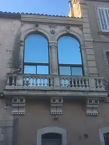 Il doit son nom au balcon sculpté par Lucien Vernet au XIXe siècle qui orne sa façade.