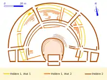 Plus que deux états successifs d'un même monument[3], ce sont en réalité deux théâtres différents qui se succèdent au même emplacement[4].