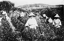 Au début du 20e siècle, l'agronome japonais Arai Kokichiro introduit la variété de théier assamica et l'acclimate, permettant ainsi la production industrielle de thé noir à destination du marché anglais[3]. En 1903, le gouvernement japonais, qui colonise Taïwan depuis 1895, fonde la station expérimentale de manufacture du thé, devenue depuis la station de recherche et de développement sur le thé ; celle-ci formalise plusieurs centaines de cultivars dont douze cultivars principaux et marque durablement le thé à Taïwan, orienté, comme au Japon, par une classification par cépage et non pas par terroir, comme en Chine continentale[3]. La colonisation japonaise oriente la production de l'île vers l'exportation du thé vert en plus du thé noir[2]. En 1908 commence l'exportation de thé noir vers la Turquie et la Russie ; en 1934, le thé noir est celui le plus majoritairement exporté de l'île, avec plus de 3 000 tonnes[1].