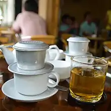 Dans les restaurants vietnamiens, y compris à l'étranger, une petite tasse de thé est habituellement servie une fois que le repas a été commandé, resservie à volonté gratuitement[7].
