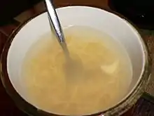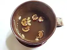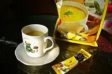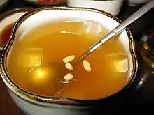 쌍화탕 (ssanghwa tang), chinois 雙和湯 (shuāng hé tāng), littéralement Harmonie de l'énergie et du sang[141]. Le Ssanghwa-tang est une tisane faite à partir d'un extrait vendu tout préparé[142] qui comprend les principales racines médicinales chinoises: de la racine séchée de pivoine de Chine (Paeonia obovata), de Rehmannia glutinosa, d'Astragalus propinquus, d'angélique coréenne (Angelica gigas), de livèche (Levisticum officinale) le tout aromatisé à la cannelle et à la réglisse chinoise, sucré au jujube etc. Il s'agit d'un thé reconstituant dont la formulation est variable..