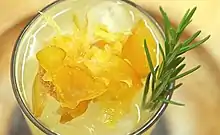 생강차 (saeng-gang cha), chinois 生薑茶 (Shēng jiāng chá). La tisane de gingembre (Zingiber officinale) est une infusion traditionnellement utilisée comme phytothérapie en Asie, sa saveur «est brûlante, poivrée et aromatique, elle réchauffe et rend service à toutes les occasions et saisons de l'année. Elle est stomachique, excitante, anti-infectieuses et sudorifique»[134]. On infuse du gingembre frais ou sec[135] 15 min dans l'eau très chaude en la parfumant au zeste d'orange[136]. Cette boisson fait l'objet de publications académiques nombreuses dont son utilité contre le diabète de type 2 (2021)[137], la production de boisson aromatisée à la menthe[138], au thé vert[139].