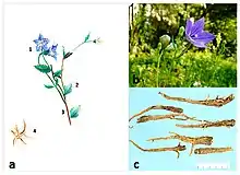 도라지차 (dolaji cha) Platycodon grandiflorus, la racine de la campanule à grandes fleurs ou キキョウ (kikyō) en japonais contient une grande quantité de flavonoïdes, d'acide phénolique et de saponines dont les platycosides cytotoxiques contre les cellules cancéreuses, neuroprotectrice, antivirale et hypocholestérolémiantes[101], en médecine traditionnelle chinoise et coréenne elles ont des vertus antitussives, immunostimulatrices, anti-inflammatoires, antioxydantes, antitumorales, anti-obésité, antidépressives et cardiovasculaires[102]. Leur torréfaction donne un gout agréable[103].