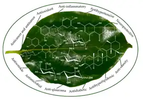 Même si la teneur en polyphénols est une des plus basses des feuilles de plantes à effet antioxydant, sa capacité antioxydante totale est largement au-dessus de la moyenne[33],[34]. Une comparaison effectuée chez le rat (2019) montre une action hypoglycémique, des effets bénéfiques sur le profil lipidique, les fonctions rénale et hépatique du thé de feuille de plaqueminier, au même titre que de la tisane de feuille de mûrier[35].