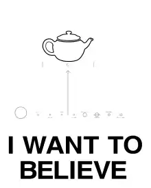 « De nombreuses personnes orthodoxes parlent comme si c'était le travail des sceptiques de réfuter les dogmes plutôt qu'à ceux qui les soutiennent de les prouver. Ceci est bien évidemment une erreur. Si je suggérais qu'entre la Terre et Mars se trouve une théière de porcelaine en orbite elliptique autour du Soleil, personne ne serait capable de prouver le contraire pour peu que j'aie pris la précaution de préciser que la théière est trop petite pour être détectée par nos plus puissants télescopes. Mais si j'affirmais que, comme ma proposition ne peut être réfutée, il n'est pas tolérable pour la raison humaine d'en douter, on me considérerait aussitôt comme un illuminé. Cependant, si l'existence de cette théière était décrite dans des livres anciens, enseignée comme une vérité sacrée tous les dimanches et inculquée aux enfants à l'école, alors toute hésitation à croire en son existence deviendrait un signe d'excentricité et vaudrait au sceptique les soins d'un psychiatre à une époque éclairée, ou de l'Inquisiteur en des temps plus anciens. »