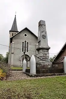 - Église placée sous le patronage de saint Maurice. Le nouvel édifice, de style néoroman, est réalisé selon les plans de l'architecte Dénarié, en 1868. Il est consacré en 1875 par Mgr Charles-François Turinaz[18].