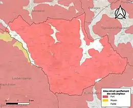 Les mouvements de terrains susceptibles de se produire sur la commune sont des tassements différentiels[40]. Le retrait-gonflement des sols argileux est susceptible d'engendrer des dommages importants aux bâtiments en cas d’alternance de périodes de sécheresse et de pluie[41]. 90,5 % de la superficie communale est en aléa moyen ou fort (58,6 % au niveau départemental et 48,5 % au niveau national métropolitain)[Carte 4]. Depuis le , en application de la loi ÉLAN, différentes contraintes s'imposent aux vendeurs, maîtres d'ouvrages ou constructeurs de biens situés dans une zone classée en aléa moyen ou fort[Note 6],[42].