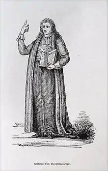 Représentation d'un théophilanthrope dans l'ouvrage d'Augustin Challamel et Wilhelm Ténint, Les Français sous la Révolution, Paris, Challamel, 1843.