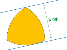 La largeur dans une direction donnée d'un convexe du plan euclidien est définie comme la distance minimale entre deux droites parallèles dans cette direction qui l'englobent. Ces deux droites sont toutes deux nécessairement des tangentes à . Une courbe de largeur constante est la frontière d'un convexe pour lequel la distance définie précédemment ne dépend pas de la direction choisie. Ces courbes comprennent à la fois le cercle et le triangle de Reuleaux, un triangle incurvé formé de trois arcs de cercle de même rayon centrés à un point d'intersection des deux autres cercles. L'aire englobée par un triangle de Reuleaux de largeur est égale à