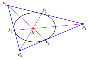 Les diagonales joignant les sommets opposés d'un hexagone sont concourantes si et seulement si cet hexagone est circonscrit à une conique[1]:p. 218[2]