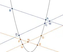 Pour tout point M, si la droite (resp. la droite ) rencontre la courbe en n points (resp. alors le rapport est indépendant du point M.