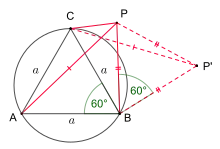 - Étant donné un triangle équilatéral ABC dans le plan et un point P dans le plan du triangle ABC, les longueurs PA, PB et PC forment les côtés d'un triangle (éventuellement dégénéré).