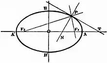 - Le second théorème de Poncelet énonce que (FM) et (F'M) sont les bissectrices de et .