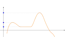 Considérons une fonction continue, dérivable et dont la dérivée est également continue (on dira que la fonction est de classe C1). La figure sur la droite montre le graphe d'une telle fonction. La dérivée de cette fonction s'annule parfois. Les points x où la dérivée f'(x) s'annule s'appellent des points critiques. Maintenant, considérons l'ensemble K des images f(x) de ces points critiques x. L'ensemble K est représenté par les points bleus dans la figure. Le théorème de Sard dit alors que cet ensemble est négligeable. On dit encore qu'il est de mesure nulle. Sur l'exemple, cet ensemble K est constitué de trois points.