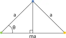 Dans le triangle isocèle de côtés a, a et ma ainsi obtenu, on peut écrire :