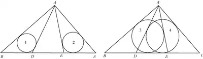 Dans un triangle ABC de cercle inscrit et de hauteur muni d'une cévienne , on inscrit deux cercles et dans et . On note le rayon du cercle et on pose .