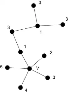 Sinon, on peut supposer que les cinq sommets , , , , adjacents à dans cet ordre (qui dépend de la façon dont nous écrivons ) sont colorés avec les couleurs 1, 2, 3, 4, 5 respectivement.