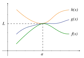 En analyse, le théorème des gendarmes[1] (également appelé théorème de l'étau[2], théorème d'encadrement[3] ou théorème du sandwich[4]) est un théorème concernant la limite d'une fonction. Selon ce théorème, si deux fonctions (f et h) admettent la même limite en un point (a), et qu'une troisième fonction (g) est prise en « étau » (ou « encadrée » ou « prise en sandwich ») entre f et h dans le voisinage de a, alors g admet en a une limite, égale à la limite commune de f et h.