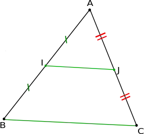 Puisque I est milieu de (A,B) et J est milieu de (A,C), on a