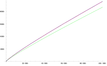 Un approximant de π(x) nettement meilleur que xln(x)[7] est la fonction logarithme intégral li(x) ou sa variante, la fonction d'écart logarithmique intégrale Li(x)[8] :