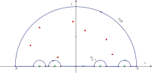 Soit une fonction holomorphe sur ℂ sauf en un ensemble de pôles simples réels, , et de singularités isolées purement complexes, . Supposons que l'on se trouve dans un des deux cas suivant :