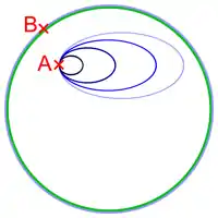 On considère le segment passant par x et f(x) et d'extrémités f(x) et un point du cercle. Cette construction est illustrée sur la figure de droite. Comme x et f(x) ne sont jamais confondus, la fonction F est parfaitement définie. Si x est sur la frontière, les points x et F(x) sont confondus. Il est relativement simple de montrer que F est continue.