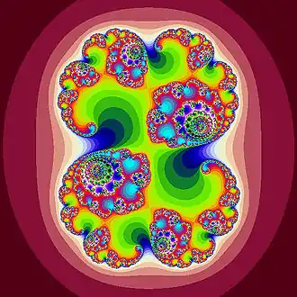 Ceci donne lieu à une suite qui, si elle converge, converge vers un zéro de P. Cette idée est exploitée pour montrer le théorème du point fixe pour les fonctions contractantes par exemple. Cependant, la convergence n'est, ici, pas automatique : l'ensemble des valeurs de x pour lesquelles la suite itérée est bornée n'est pas ℂ en général ; même en se limitant à un domaine borné, il arrive fréquemment que la suite diverge pour presque tout point de départ ; ceux pour lesquels elle reste bornée forment d'ailleurs une des « fractales » les plus connues : l'ensemble de Julia (rempli) associé à P, et qui est souvent une poussière de Cantor, de dimension de Hausdorff nulle ; c'est par exemple le cas du polynôme P(X) = –X2 + X – 1.