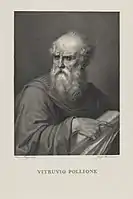 Vitruve était un écrivain, architecte et ingénieur romain actif au Ier siècle av. Il était le théoricien de l'architecture le plus éminent de l'Empire romain connu aujourd'hui, ayant écrit De architectura (connu aujourd'hui sous le nom de Les dix livres d'architecture), un traité écrit en latin et en grec sur l'architecture, dédié à l'empereur Auguste. Probablement écrit entre 27 et 23 av. J.-C.[1], c'est la seule source contemporaine majeure sur l'architecture classique à avoir survécu. Divisé en dix sections ou "livres", il couvre presque tous les aspects de l'architecture romaine, depuis l'urbanisme, les matériaux, les décorations, les temples, l'approvisionnement en eau, etc. Il définit rigoureusement les ordres classiques de l'architecture . Il propose également les trois lois fondamentales auxquelles l' architecture doit obéir, pour être ainsi considérée : firmitas, utilitas, venustas, qui signifie adéquation structurelle, adéquation fonctionnelle, et beauté.