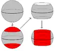 - : on retire un cylindre de la 2-sphère, ce qui laisse deux disques. Recollant , c'est-à-dire deux autres disques, il est clair que le résultat est deux sphères disjointes (figure 2a).