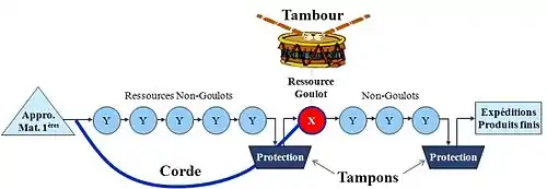La technique de pilotage des flux de la TOC s'appelle le tambour - tampon - corde (ou DBR pour Drum-Buffer-Rope).