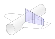 La section infinitésimale de largeur le long de l'envergure de l'aile apporte une portance linéique , il faut intégrer toutes les portances linéiques pour avoir la portance du profil. Pour le bout de profil infinitésimal de largeur , le Théorème de Kutta-Jukowski donne :